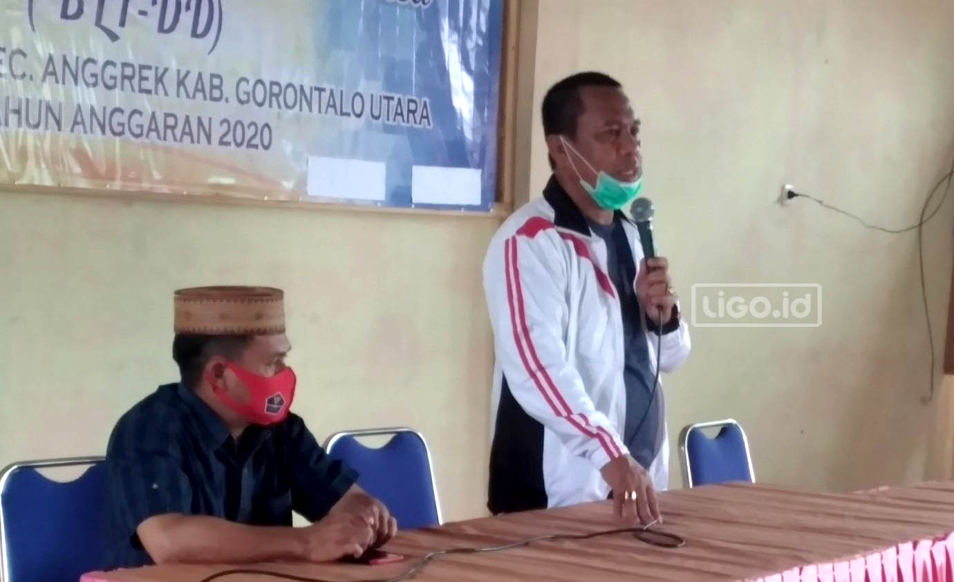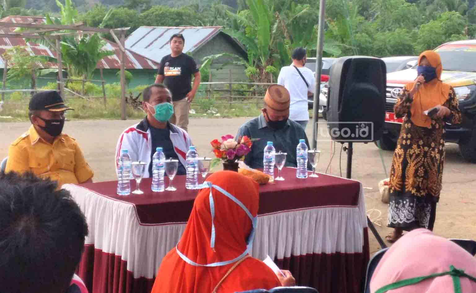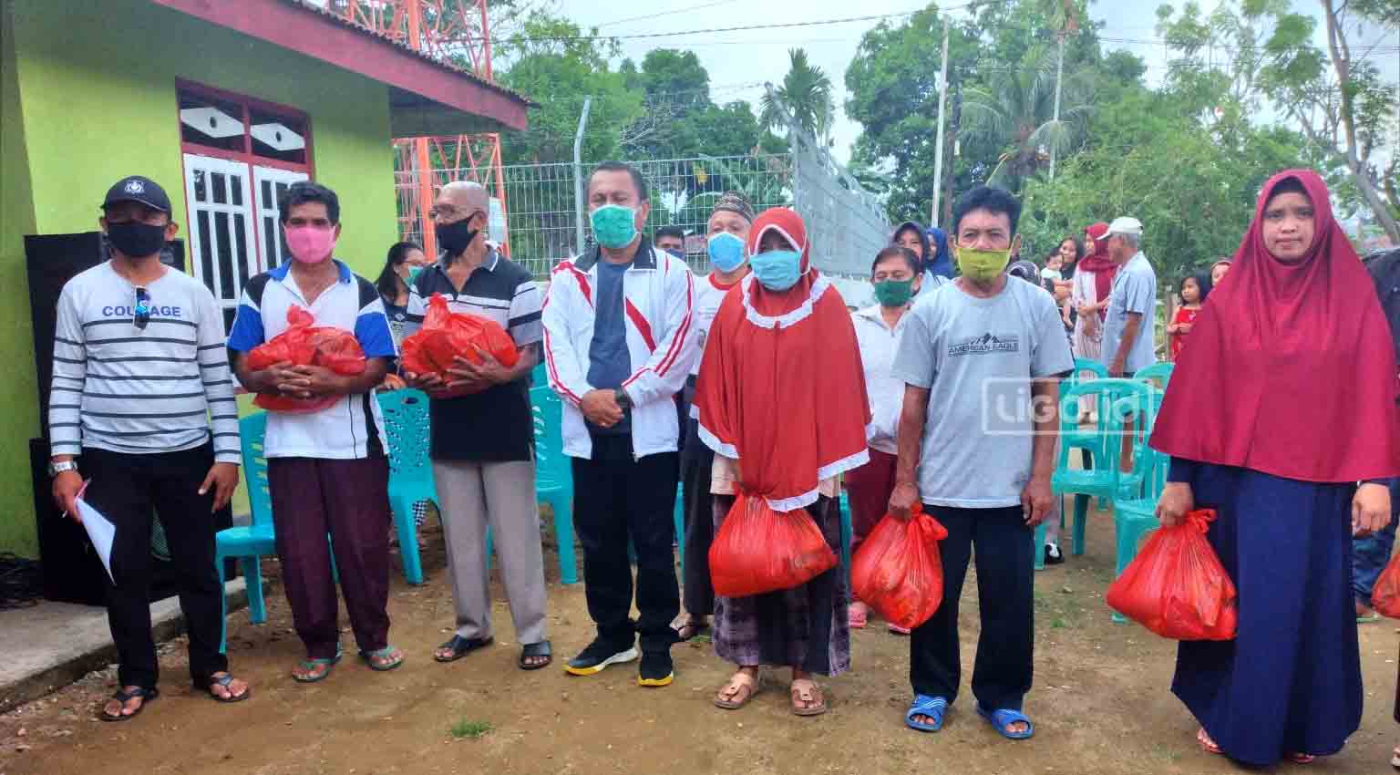 Pujian dan harapan pun terlontar dari mulut sang Kades ketika memberikan sambutan dalam acara tersebut. Selanjutnya di dampingi Camat Kwandang, Ridwan Yasin menyerahkan secara simbolis paket sembako kepada 60 orang warga.