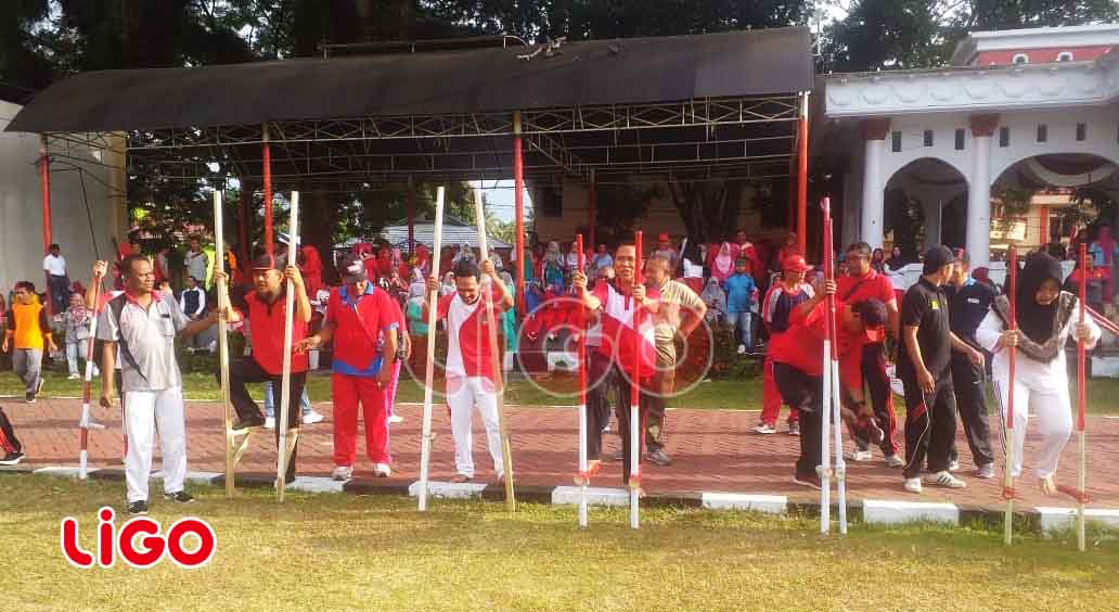 Peringatan Hari Olahraga Nasional di Kabupaten Boalemo diramaikan dengan berbagai kegiatan, diantaranya Egran dan Hadang yang diikuti Wakil Bupati Boalemo Anas Jusuf, Pimpinan OPD, ASN dan Siswa-Siswi SD, SMP yang sebelumnya diawali dengan kegiatan Olahraga Senam Bersama. (bkhumas/C01).