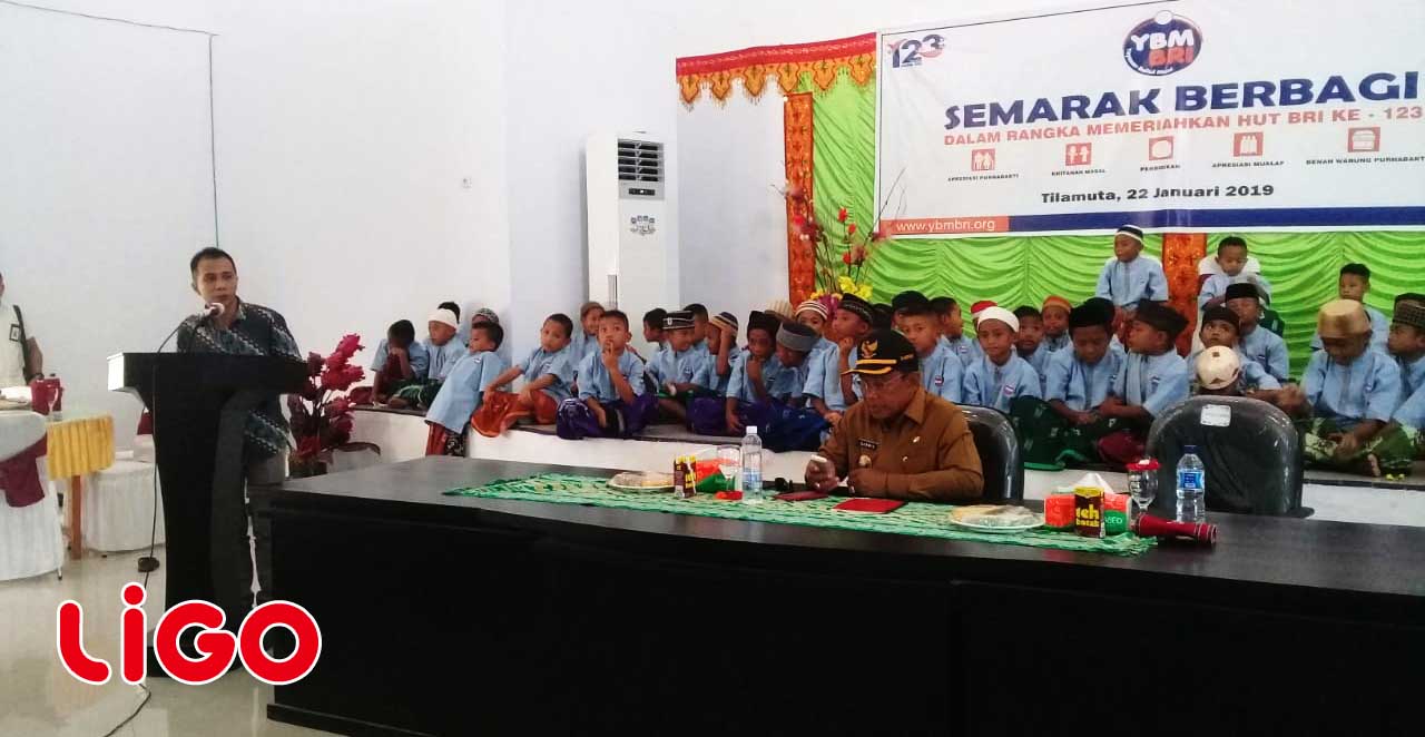 Agenda rutin Tahunan Bank BRI yang juga di hadiri Kepala BRI Cabang Limboto, Nanang Setiawan dalam sambutannya menyampaikan harapan besarnya dengan kegiatan sosial Semarak Berbagi Bank BRI ini dapat membantu Masyarakat Boalemo dan membangun kerja sama dengan Pemda Boalemo.