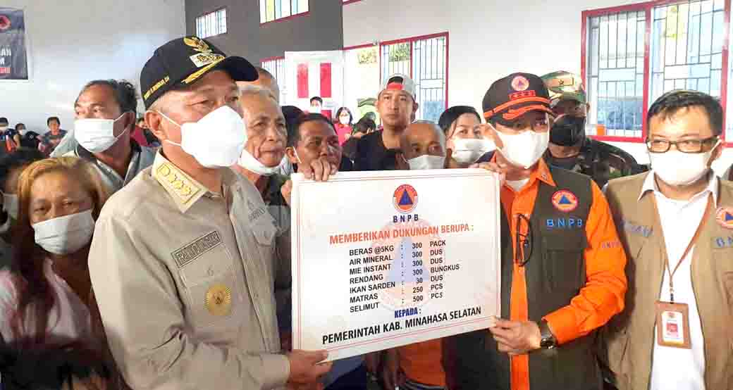 Selain meninjau langsung lokasi bencana, Kepala BNPB dan rombongan yang didampingi Bupati Minsel Franky Wongkar, juga menyalurkan bantuan tanggap darurat senilai Rp500 juta.