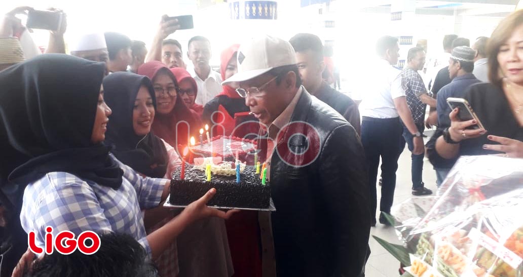 LINTAS LIMBOTO (LIGO) – Hari Ulang Tahun Bupati Boalemo Darwis Moridu ke-60 Tahun, yang jatuh pada 11 September kemarin, turut dirayakan secara sederhana oleh Tim Sahabat Darem (SADAR) di Bandara Djalaludin Gorontalo, yang ditandai dengan Peniupan Lilin dan Pemotongan Tumpeng dan disaksikan langsung oleh Bupati Kabupaten Gorontalo Prof. Nelson Pomalingo yang kebetulan saat itu baru tiba dari Jakarta bersama Bupati Darwis Moridu.