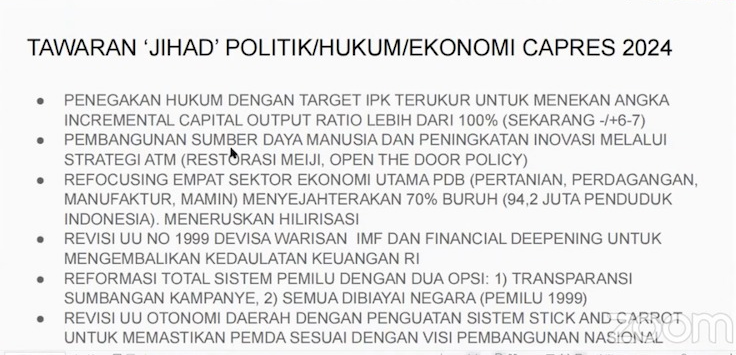 Calon presiden 2024 ditawarkan untuk berjihad dengan merevisi UU Devisa tahun 1999.