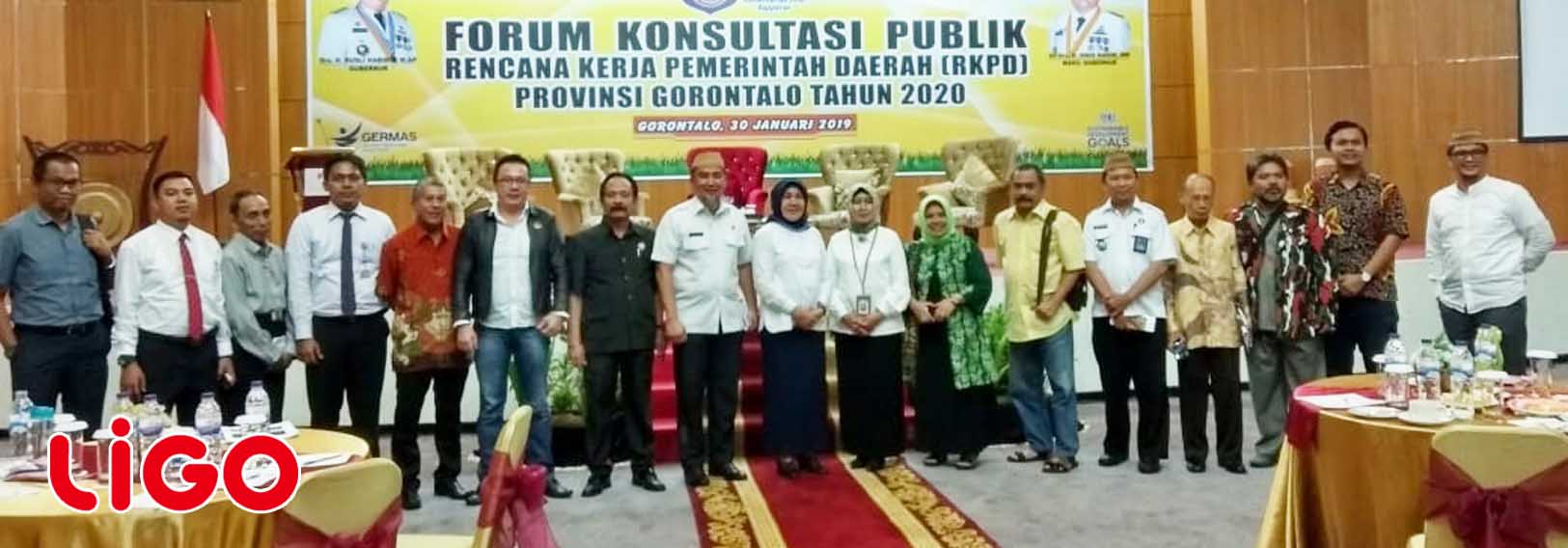 LINTAS EKONOMI (LIGO) – Badan Perencanaan Penelitian Pengembangan Daerah (Bapppeda) Provinsi Gorontalo lakukan Forum Konsultasi Publik soal awal Rencana Kerja Pemeritah Daerah (RKPD) yang akan laksanakan pada Tahun 2020 mendatang. Rabu (30/01). Ballroom Hotel Damhil.