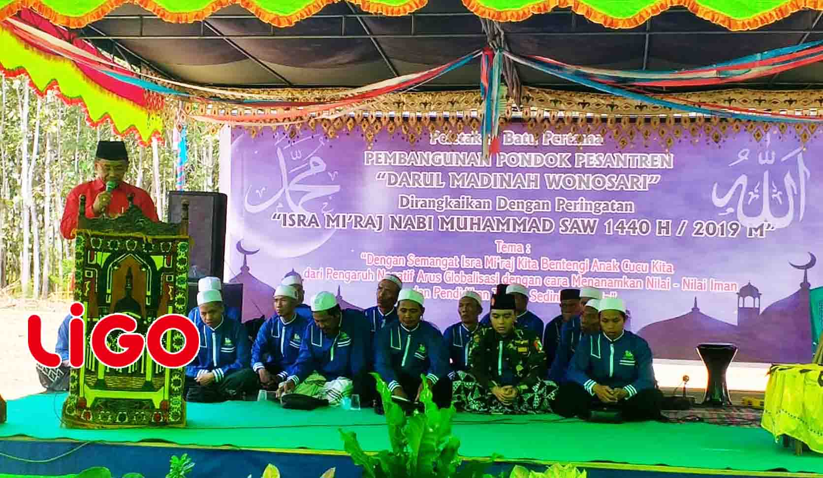 LINTAS BOALEMO (LIGO) – Peringatan Isra Mi’raj Nabi Muhammad SAW 1440 Hijriah membawa rahmat tersendiri bagi masyarakat Kecamatan Wonosari, ini dikarenakan bertepatan dengan Peletakan Batu Pertama Pembangunan Pondok Pesantren Darul Madinah.