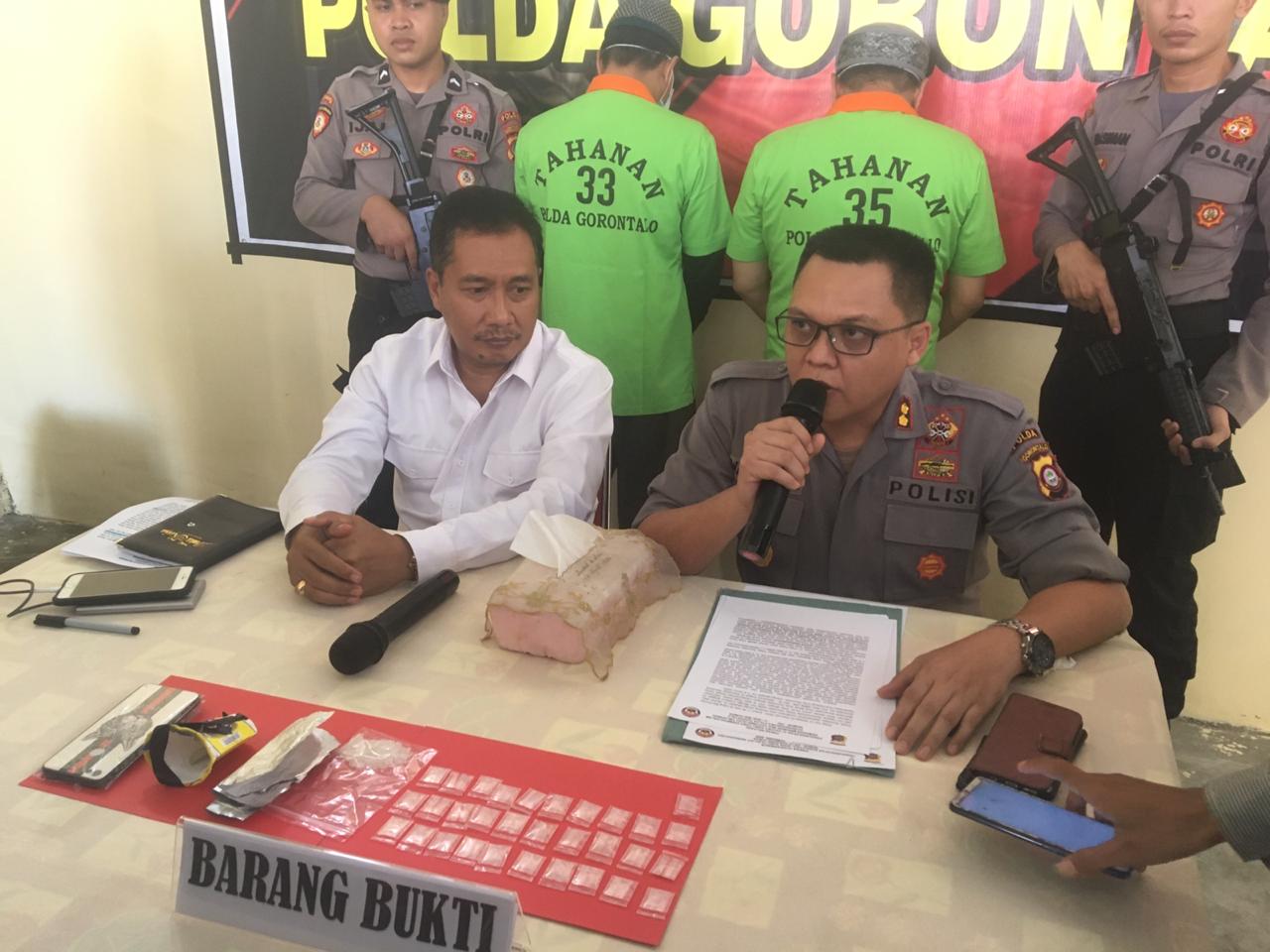 Kabid Humas Polda Gorontalo, AKBP Wahyu Tri Cahyono menyampaikan bahwa berdasarkan informasi dari masyarakat bahwa di jalan Raja Eyato kelurahan Molosipat akan dilakukan transaksi narkoba oleh 2 orang dengan inisial AO (28) dan IK (47).