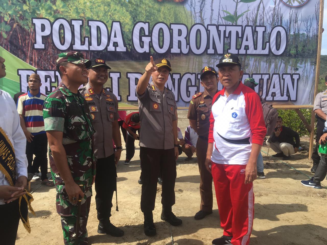 LIGO.ID – Polda Gorontalo melaksanakan kegiatan peduli penghijaun dengan melakukan penanaman pohon mangrove sebanyak 1.500 pohon di pantai Desa Bolihutuo, Kecamatan Botumoito, Boalemo, Jumat (10/1). Wakapolda Gorontalo, Jaya Suprianto menjelaskan bahwa kegiatan penanaman pohon mangrove ini dilaksanakan secara serentak seluruh indonesia oleh kepolisiaan republik indonesia.