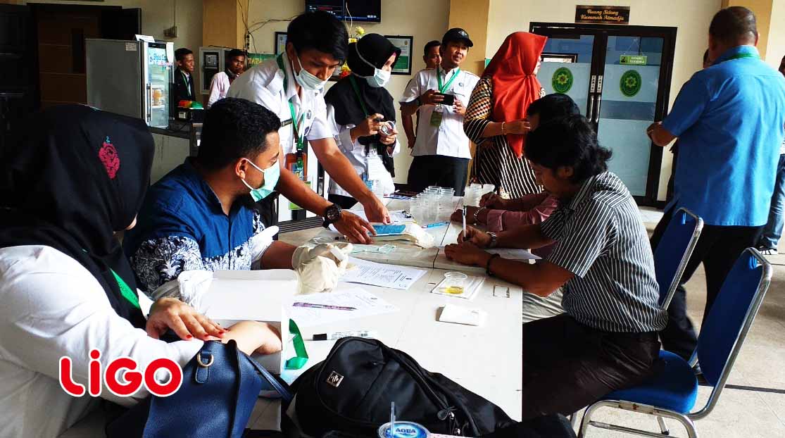 Bertempat di Ruang Sidang Pengadilan Negeri BNNK Boalemo lakukan Sosialisasi sekaligus Sidak Pemeriksaan / Tes Narkoba Kepada Unsur Hakim, Karyawan/Karyawati serta Honorer di Lingkungan Pengadilan Negeri Tilamuta Kelas 2, Kamis (02/05).