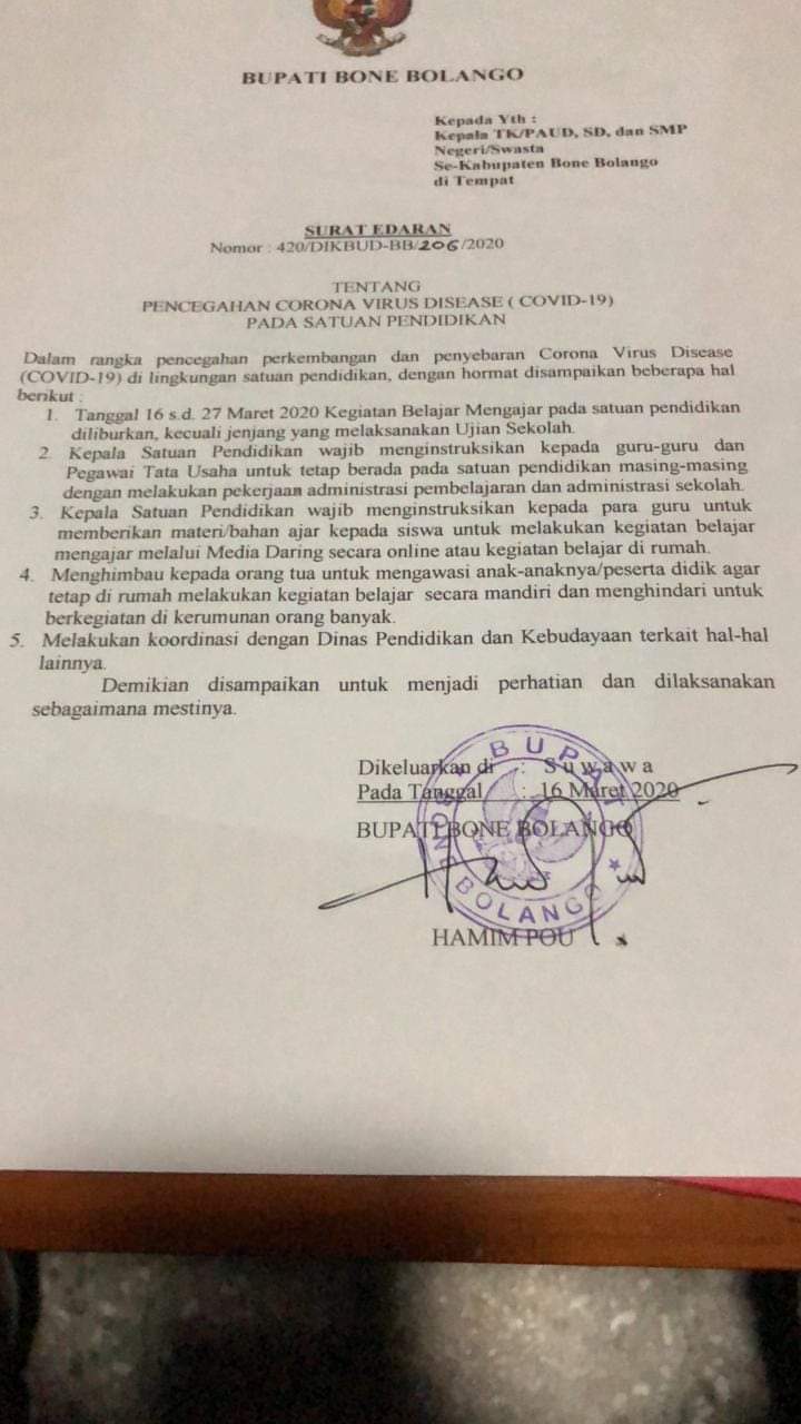 “Olehnya kita perlu mewaspadai dan mencegah agar Covid-19 ini tidak masuk ke dalam Kabupaten Bone Bolango,” kata Hamim Pou di Ruang Kerjanya, Senin (16/3).