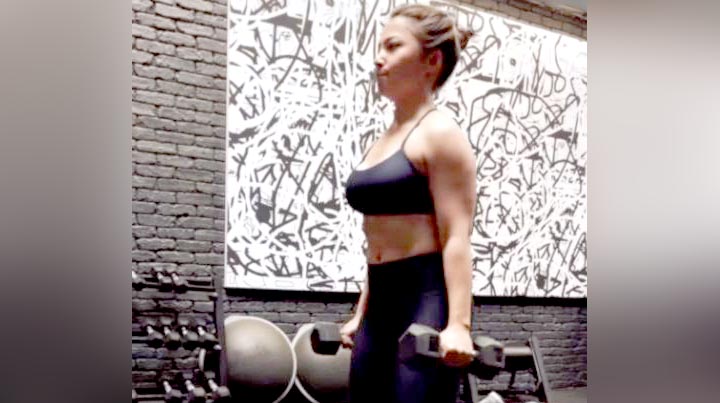 Ya, ibu muda satu ini sudah kembali berolahraga untuk bisa menghilangkan lemak serta mengencangkan kembali tubuhnya.