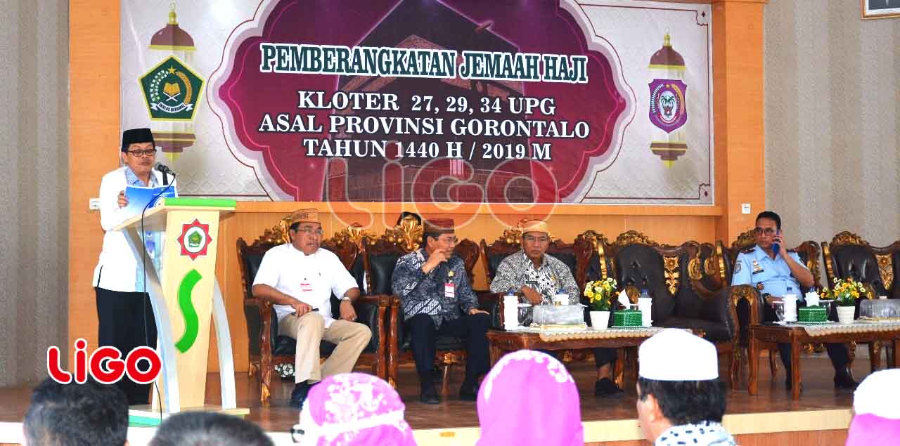 Plt. Kepala Kantor Wilayah Kementerian Agama Provinsi Gorontalo Hamka Arbie saat melepas JCH di Aula Asrama Haji mengatakan Kloter 27 UPG merupakan JCH Kloter Pertama asal Gorontalo yang diberangkatkan menuju Arab Saudi.