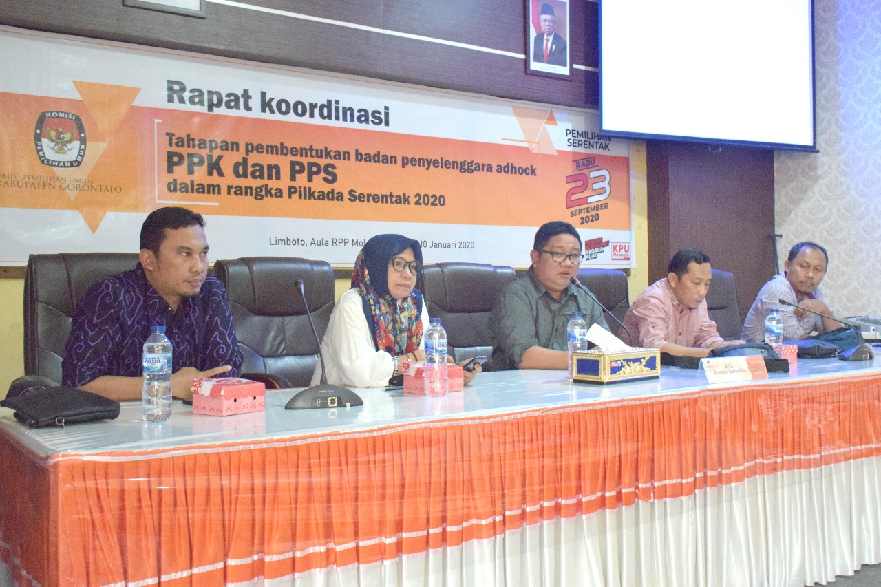 LIGO.ID – KPU Provinsi Gorontalo menggelar rapat koordinasi bersama KPU Kabupaten Gorontalo, Pohuwato dan Bone Bolango untuk membahas tahapan pembentukan badan penyelenggara adhock PPK dan PPS, Jumat (10/1)