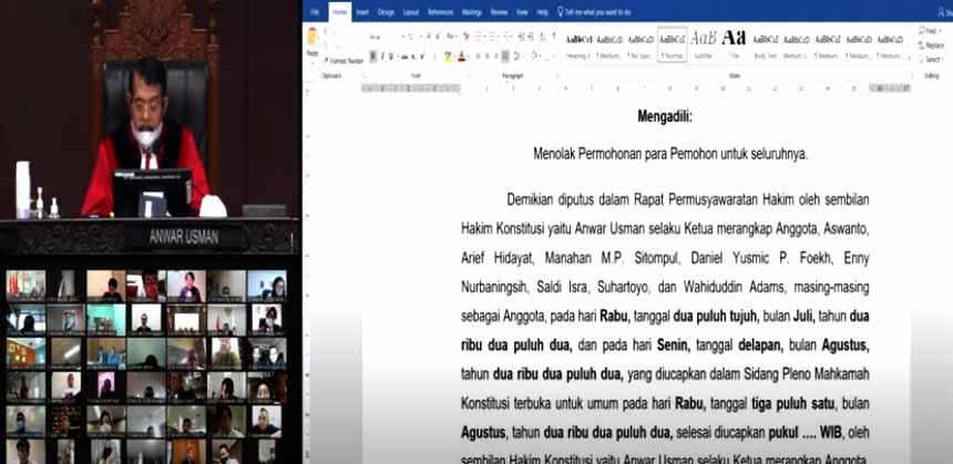 “Menolak permohonan pemohon untuk seluruhnya,” kata Ketua MK, Anwar Usman yang memimpin sidang. Rabu (31/8/2022).