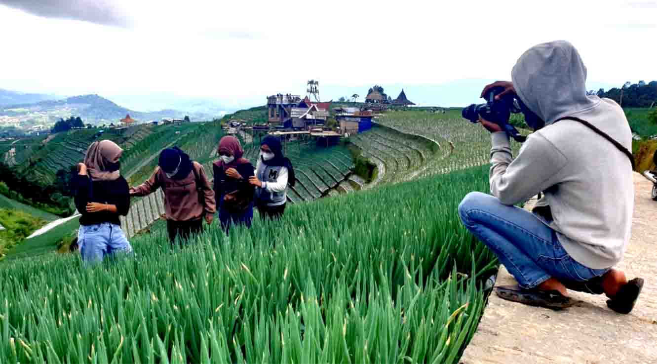 Mereka tetap merasa perlu datang ke lokasi wisata ini untuk mengisi laman akun media sosial mereka dengan foto-foto berlatar belakang ladang pertanian.