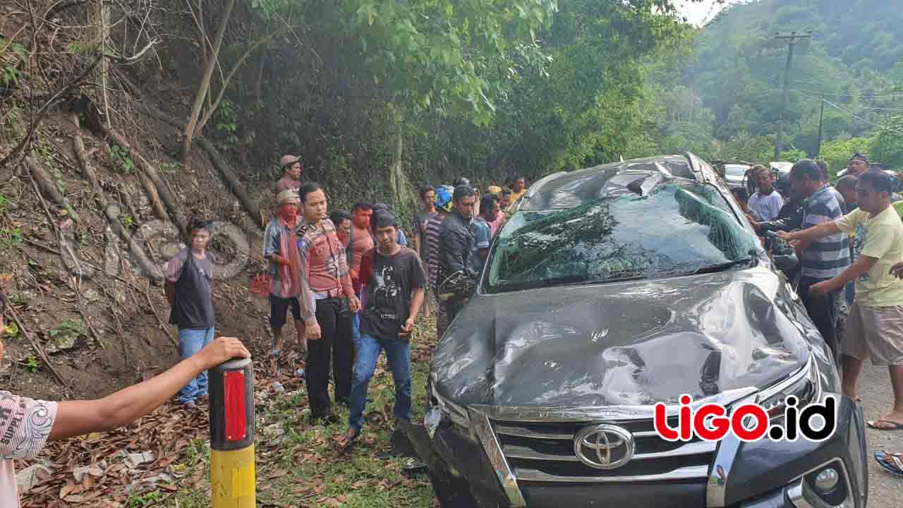 “Mobil Fortuner yang dikendarai oleh Saudara Ricko Kumampung berjalan dari arah Tibawa menuju ke arah Kwandang, ketika melintasi jalan lurus, rata dan beraspal di Desa Botumoputih, mobil tersebut oleng ke kanan dan menabrak sepeda motor tanpa TNKB yang dikendarai Saudara Tahir Bonta yang berjalan dari arah Kwandang menuju ke arah Tibawa kemudian mobil tersebut hilang kendali kemudian terbalik. Akibatnya Saudara Tahir Bonta mengalami luka-luka, patah kaki,” kata AKP Okta dalam keterangannya, Senin (6/1).