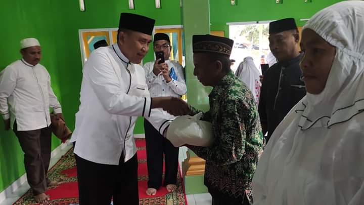 Selain menyelenggarakan shalat subuh berjamaah, Anas juga sempat memberikan bantuan sembako kepada warga yang sedang berada di masjid. (uky/ggf)