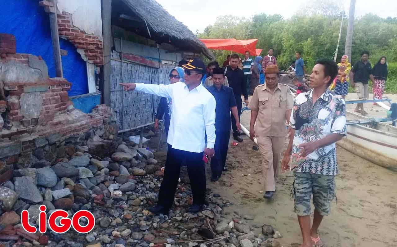 LINTAS BOALEMO (LIGO) – Bupati Boalemo Darwis Moridu meninjau langsung serta menyerahkan Bantuan kepada Masyarakat korban Abrasi Pantai Yanis Matiti di Dusun IV Huwata, Desa Potanga, Kecamatan Botumoitu. Selasa (26/02).