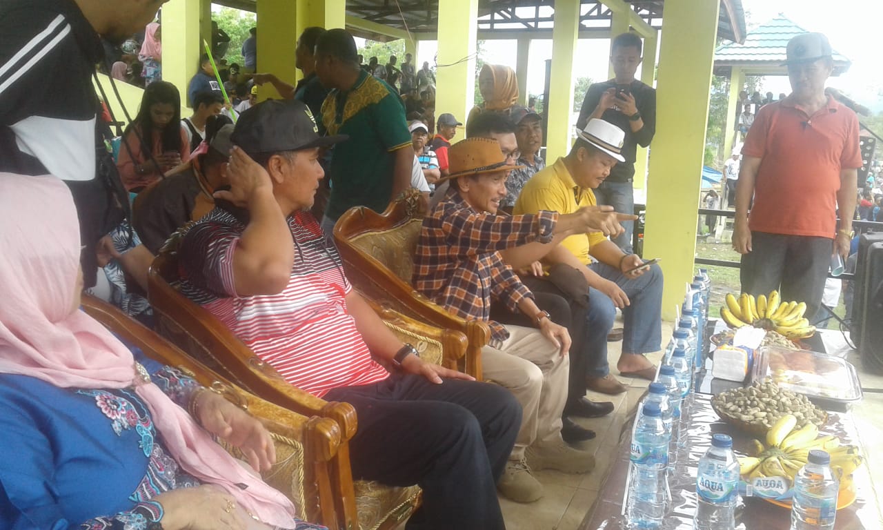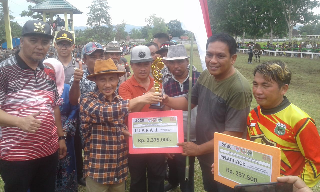 Pantauan di lokasi, Nelson hadir dalam kegiatan yang sudah berlangsung sejak hari Jumat (7/2) tersebut, untuk menutup sekaligus memberikan hadiah Tropi untuk pemenang pacuan.