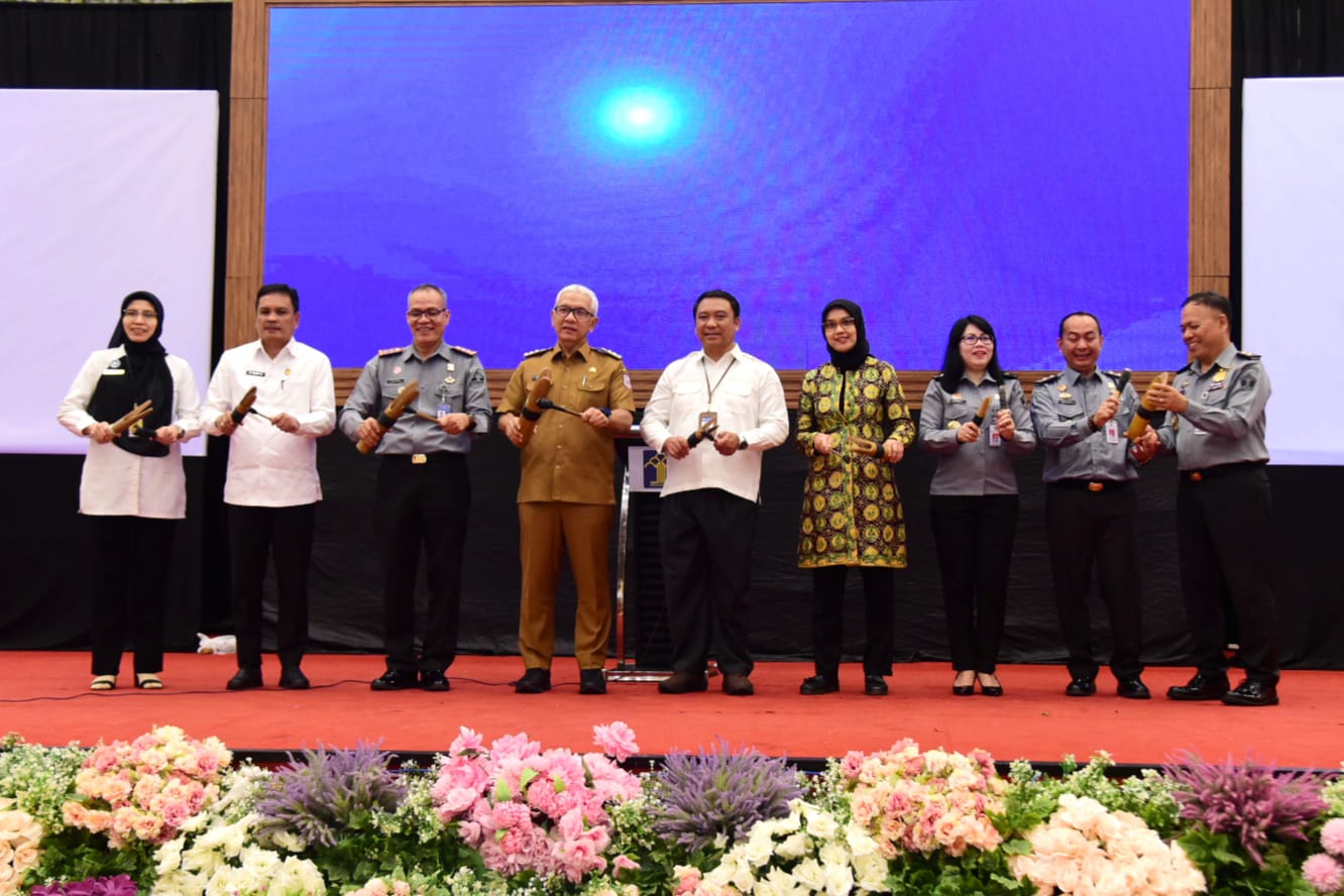 Penjabat Gubernur Gorontalo, Rudy Salahuddin, mencanangkan layanan Administrasi Hukum Umum (AHU) masuk desa di Grand Palace Convention Center, Kota Gorontalo, Senin (29/7/2024). AHU masuk desa merupakan program inovatif Kantor Wilayah Kementerian Hukum dan Hak Asasi Manusia Provinsi Gorontalo untuk mendorong Usaha Mikro, Kecil, dan Menengah (UMKM) berbadan hukum.
