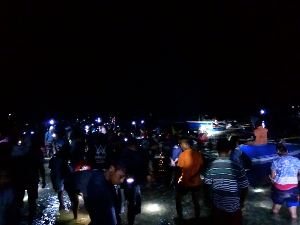 Saat waktu menunjukkan sekitar pukul 01: 26 Wita, kehebohan pun terjadi. Ratusan masyarakat yang sudah siap dengan perangkap ikannya tengah menunggu kedatangan perahu nelayan dan ikan-ikan di pinggiran pantai.