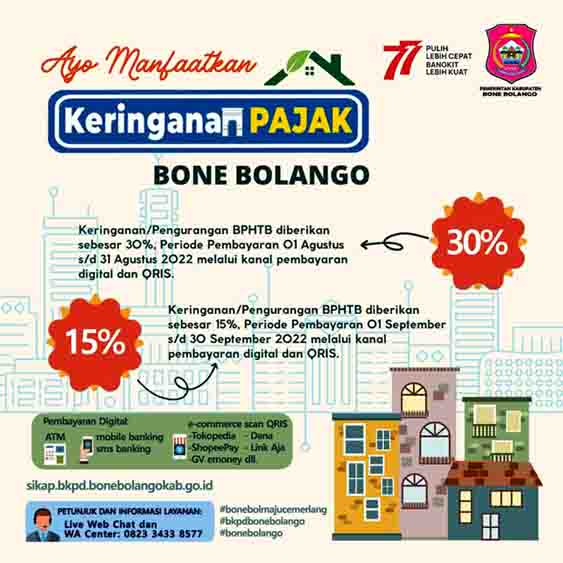 Gorontalo – ligo.id – Dalam rangka menyambut hari Kemerdekaan RI serta pemulihan ekonomi masyarakat dan daerah, Pemerintah Kabupaten Bone Bolango meluncurkan Program Keringanan BPHTB Tahap II pada periode Bulan Agustus dan September ini.