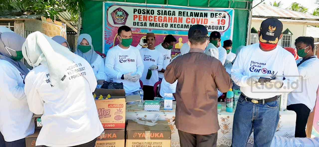 LIGO.ID – Relawan Desa Dalam rangka penanggulangan covid 19 tingkat Desa Maleo Kecamatan Paguat,Kabupaten Pohuwato resmi terbentuk dan langsung melakukan aksi sosialnya dengan membagikan sabun cuci tangan Detol Instant, Hand sanitizer dan masker kepada masyarakat Desa Maleo.