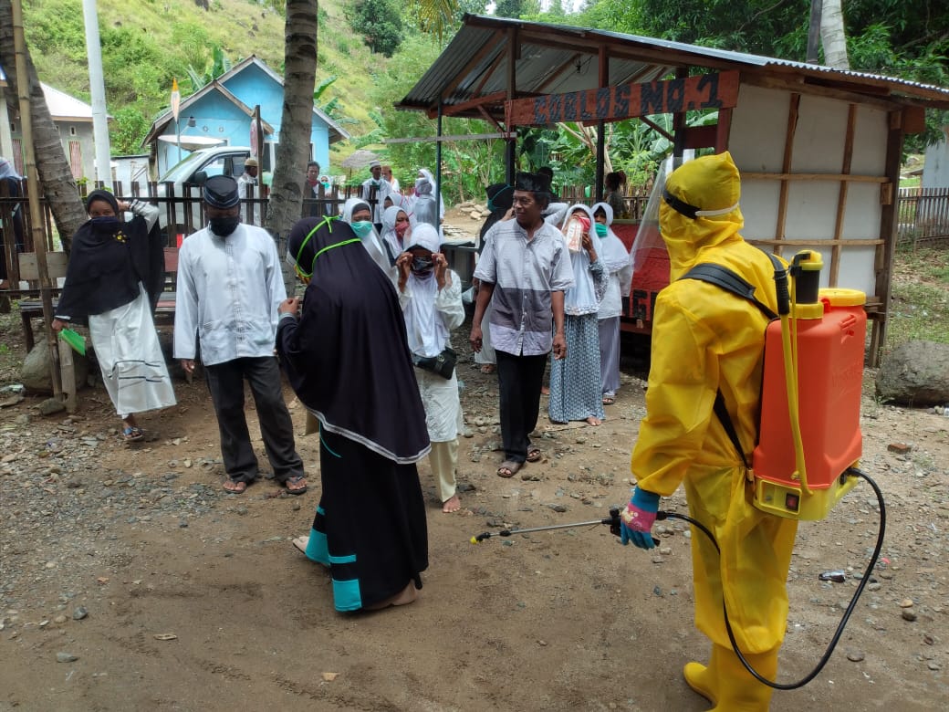Hal ini kami lakukan demi untuk memutus tali rantai penularan Covid. Kabupaten Gorontalo sudah termasuk zona merah di Propinsi Gorontalo dengan 2 Pasien Positif Covid 19, sehingga siapa pun yang berasal dari sana, baik penduduk Molantadu maupun pendatang kami akan berlakukan protokol seperti ini, urainya.
