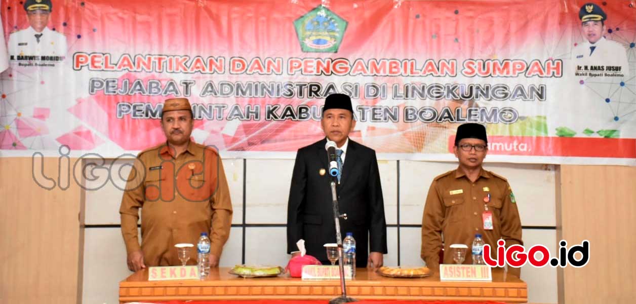 LIGO.ID – Sebanyak 63 pejabat eselon III dan IV di lingkungan Pemerintah Kabupaten Boalemo dilantik di ruang vicon Kantor Bupati Boalemo, Senin (6/1).